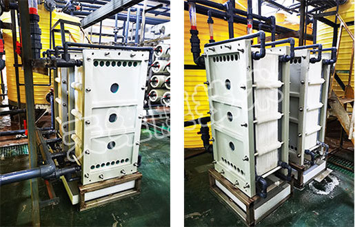 用于膜法水處理設(shè)備的前端預(yù)處理,為壓力驅(qū)動(dòng)式過(guò)濾,可有效截留懸浮物、膠體、大分子有機(jī)物等雜質(zhì),同時(shí)也可以作為機(jī)械過(guò)濾器的二級(jí)過(guò)濾,充分保障過(guò)濾器出水的水質(zhì)。根據(jù)進(jìn)水水質(zhì)的情況,平板過(guò)濾器可以選擇錯(cuò)流過(guò)濾和死端過(guò)濾兩種方式。產(chǎn)水回收率一般可以達(dá)到80%~95%,進(jìn)水壓力一般不超過(guò)2.0bar。